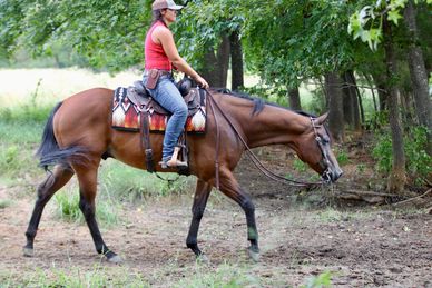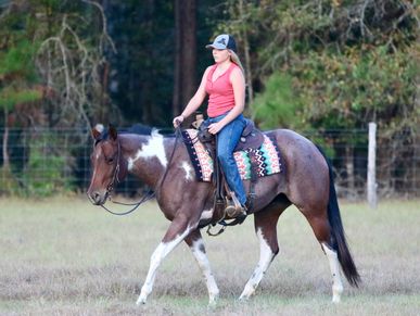 14-year-old mare. Prada is athletic and a go getter. She trail rides, started on the pattern, and neck reins. Budget friendly for how broke she is.