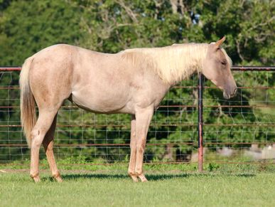 Coming 2 year old AQHA Palomino roan filly. Bred to perform and very well handled. This filly will be an asset to any program.